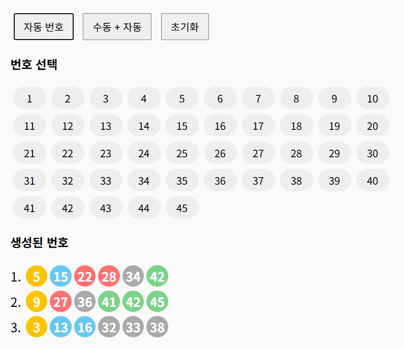 원하는 숫자를 선택한 후 나머지는 자동으로 하는 수동+자동 방식도 선택할 수 있습니다.