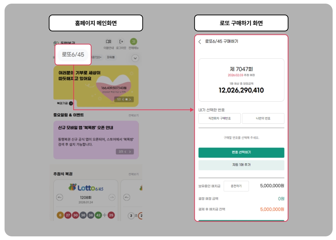 로또를 사러 매번 편의점이나 가판대에 방문하기 번거로우셨죠? 이제 핸드폰 하나로 간편하게 행운을 잡을 수 있는 시대입니다.