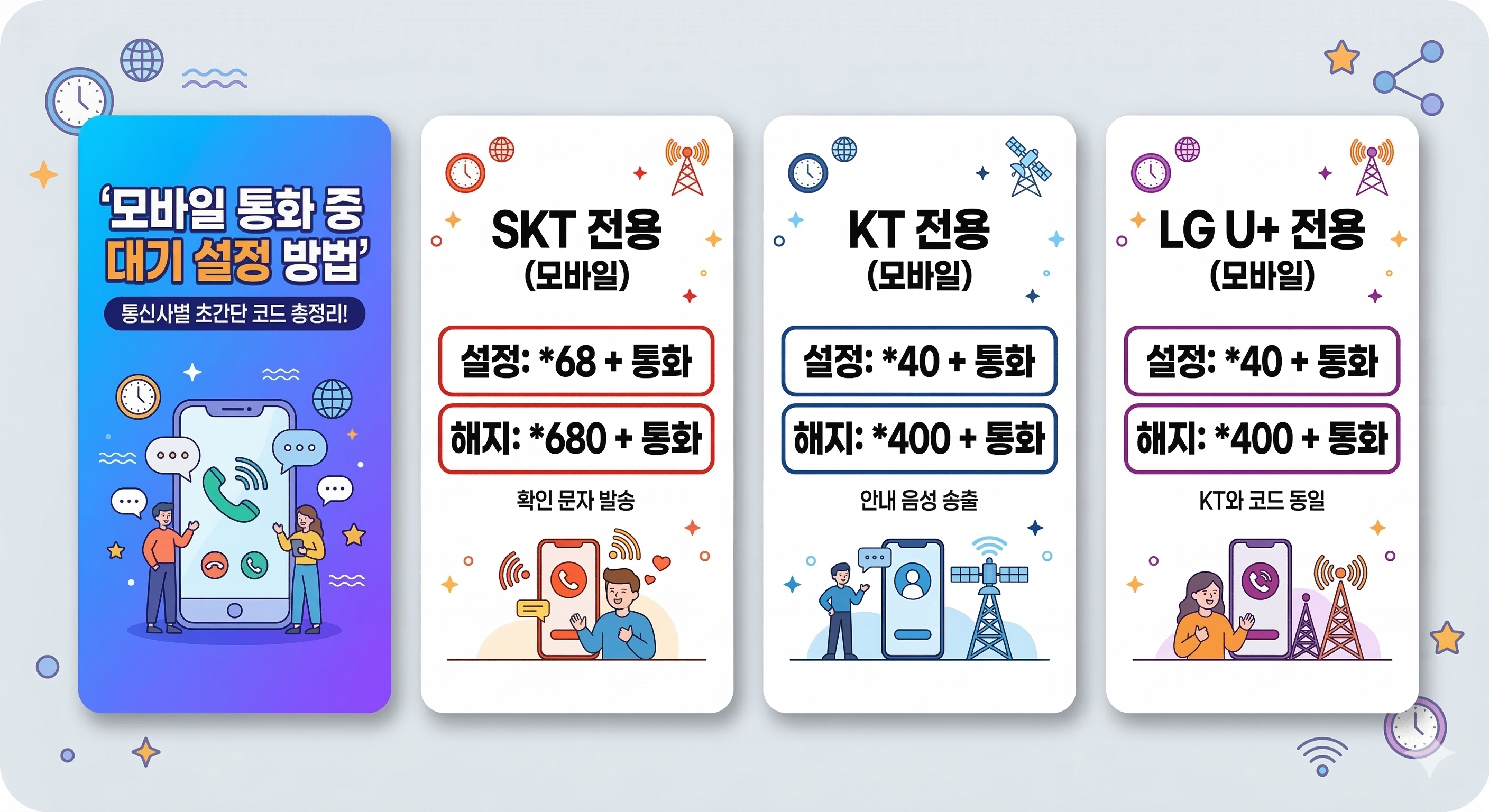 통화 중 대기 설정 및 해지 방법 총정리 (SKT, KT, LG U+ 및 아이폰/안드로이드 가이드)