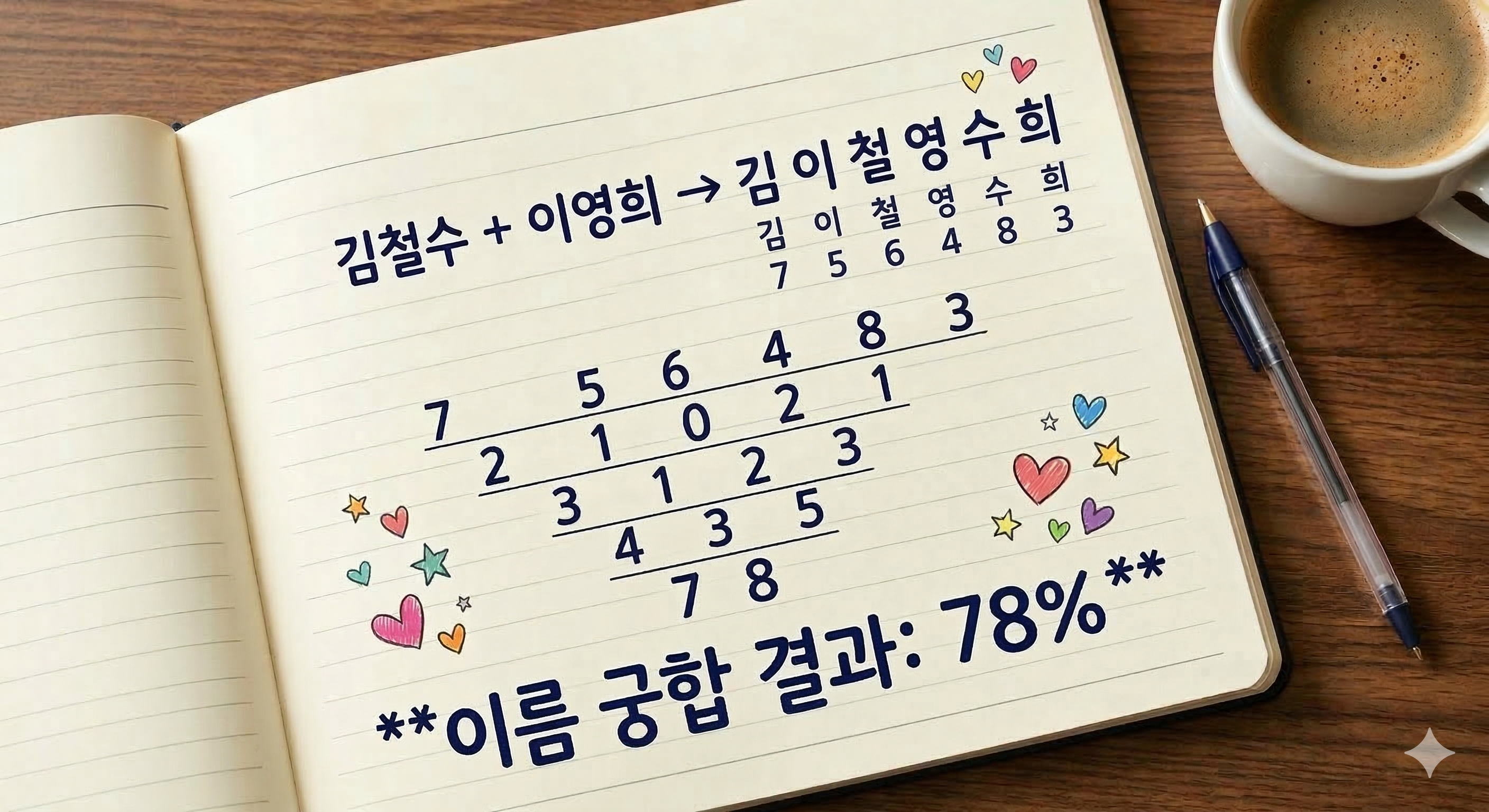 이름 궁합은 상대방과 나의 이름을 한 글자씩 교차하여 쓰고, 각 글자의 획수를 더해 최종적인 '애정 지수'를 확인하는 방식입니다. 과학적 근거보다는 심리적인 즐거움과 상대방에 대한 관심을 표현하는 하나의 소통 창구로 사용되죠.