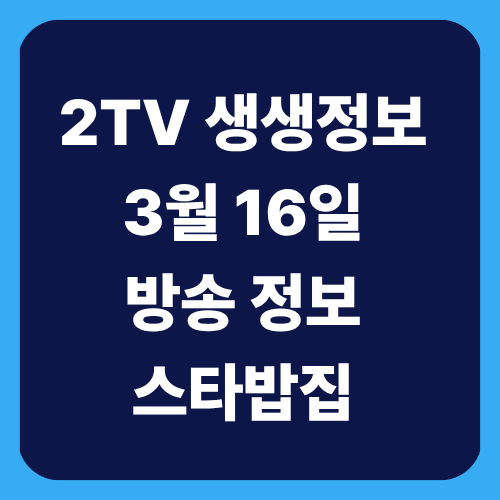 2TV 생생정보 2497회: 3월 16일 방송 정보 요약